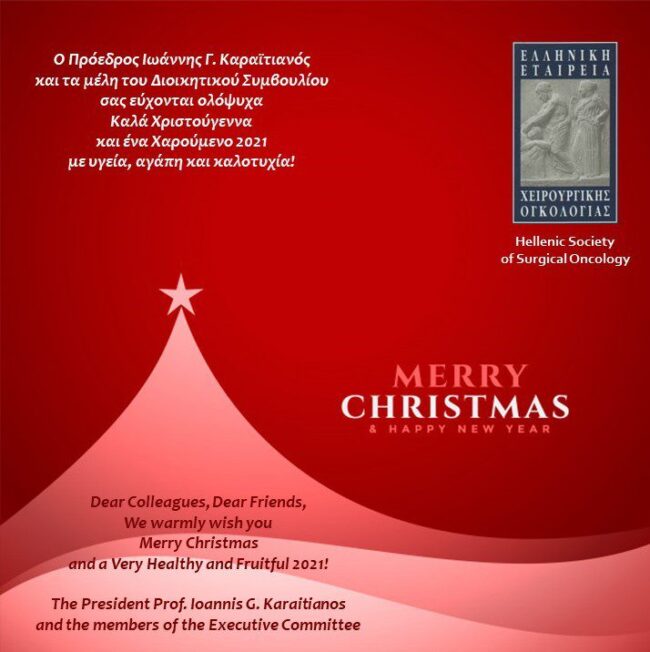 Ο Πρόεδρος Ιωάννης Γ. Καραϊτιανός και τα μέλη του Δ.Σ. της Ελληνικής Εταιρείας Χειρουργικής Ογκολογίας σας εύχονται Καλά Χριστούγεννα και Ευτυχισμένο το 2021 με υγεία!