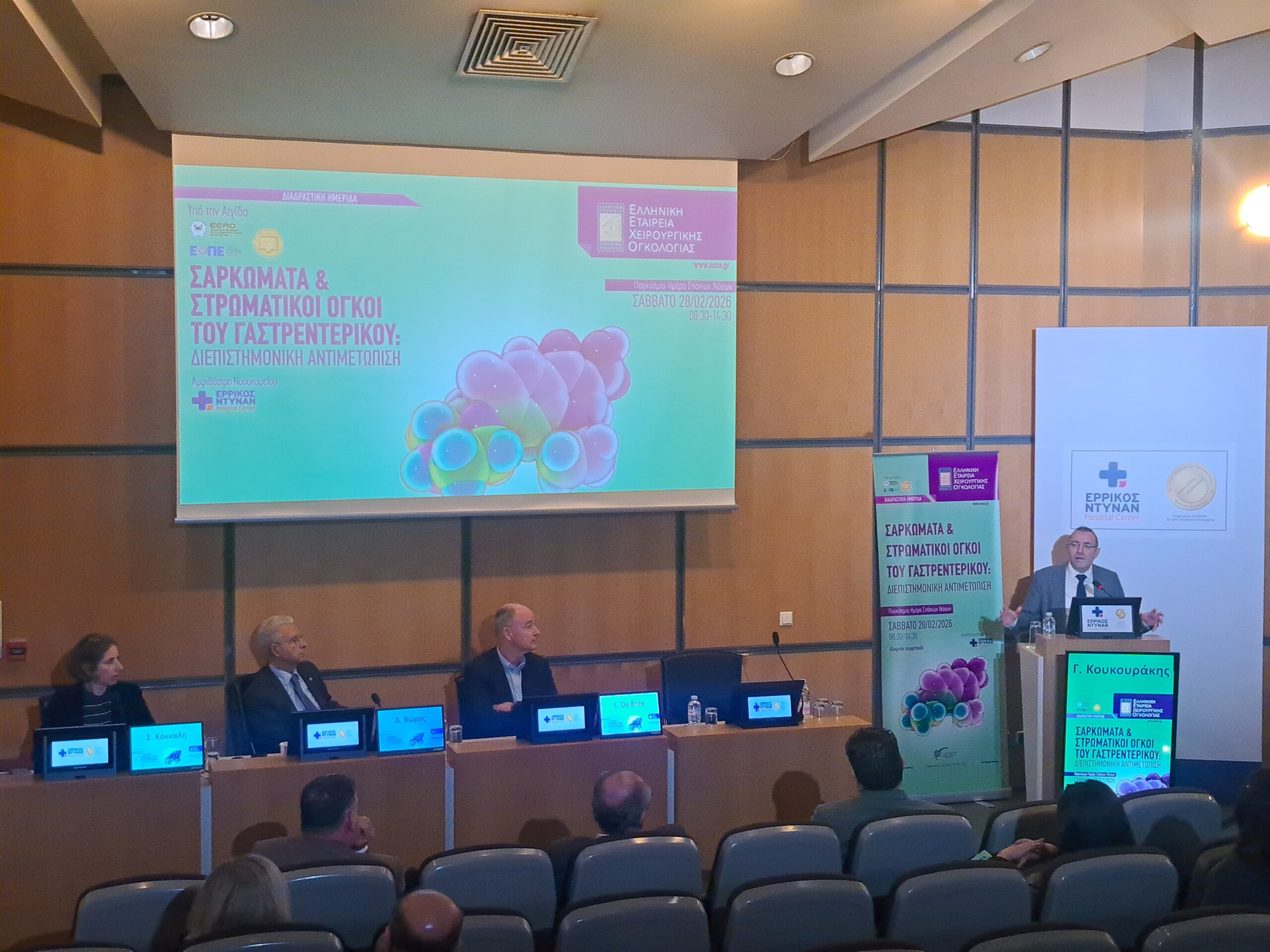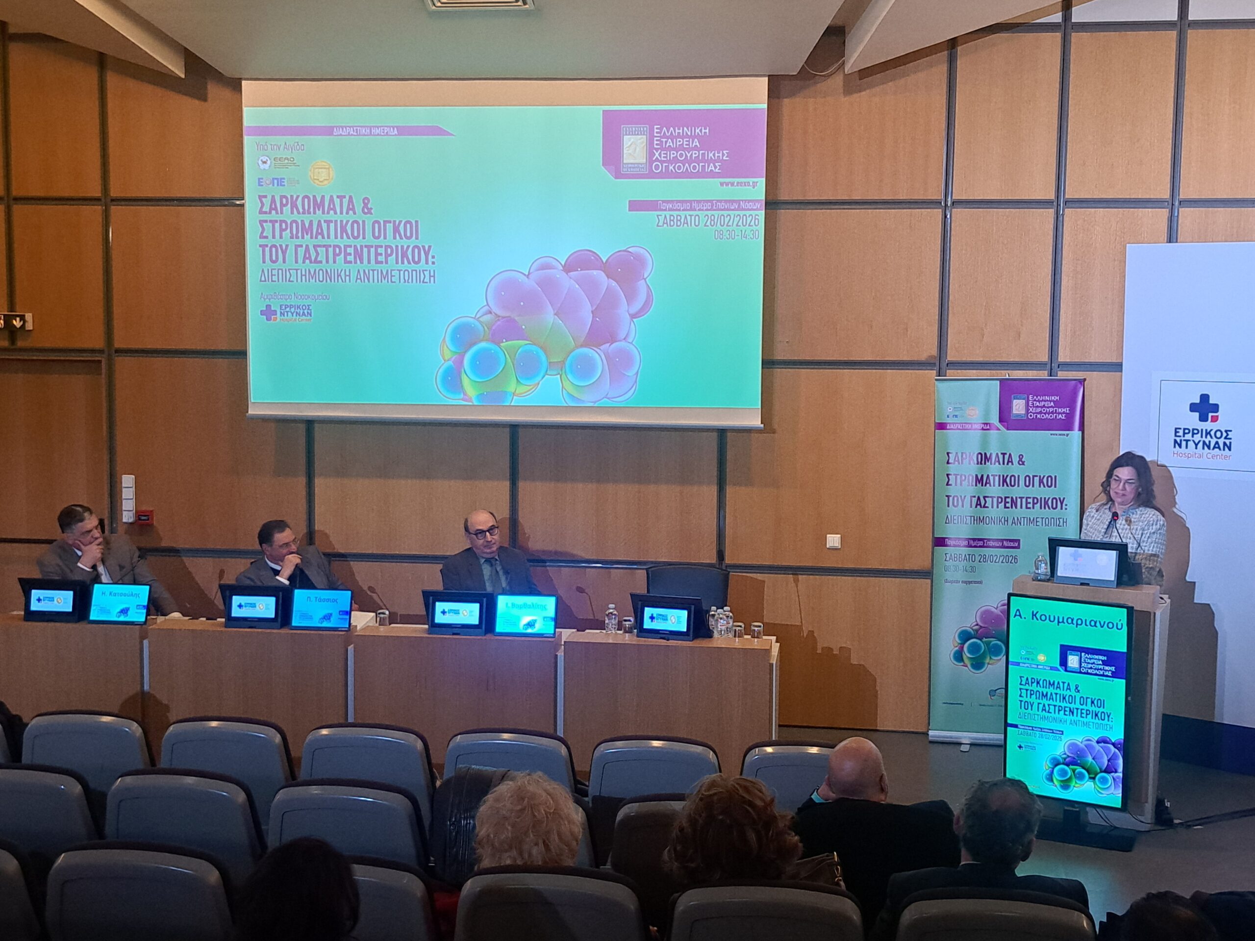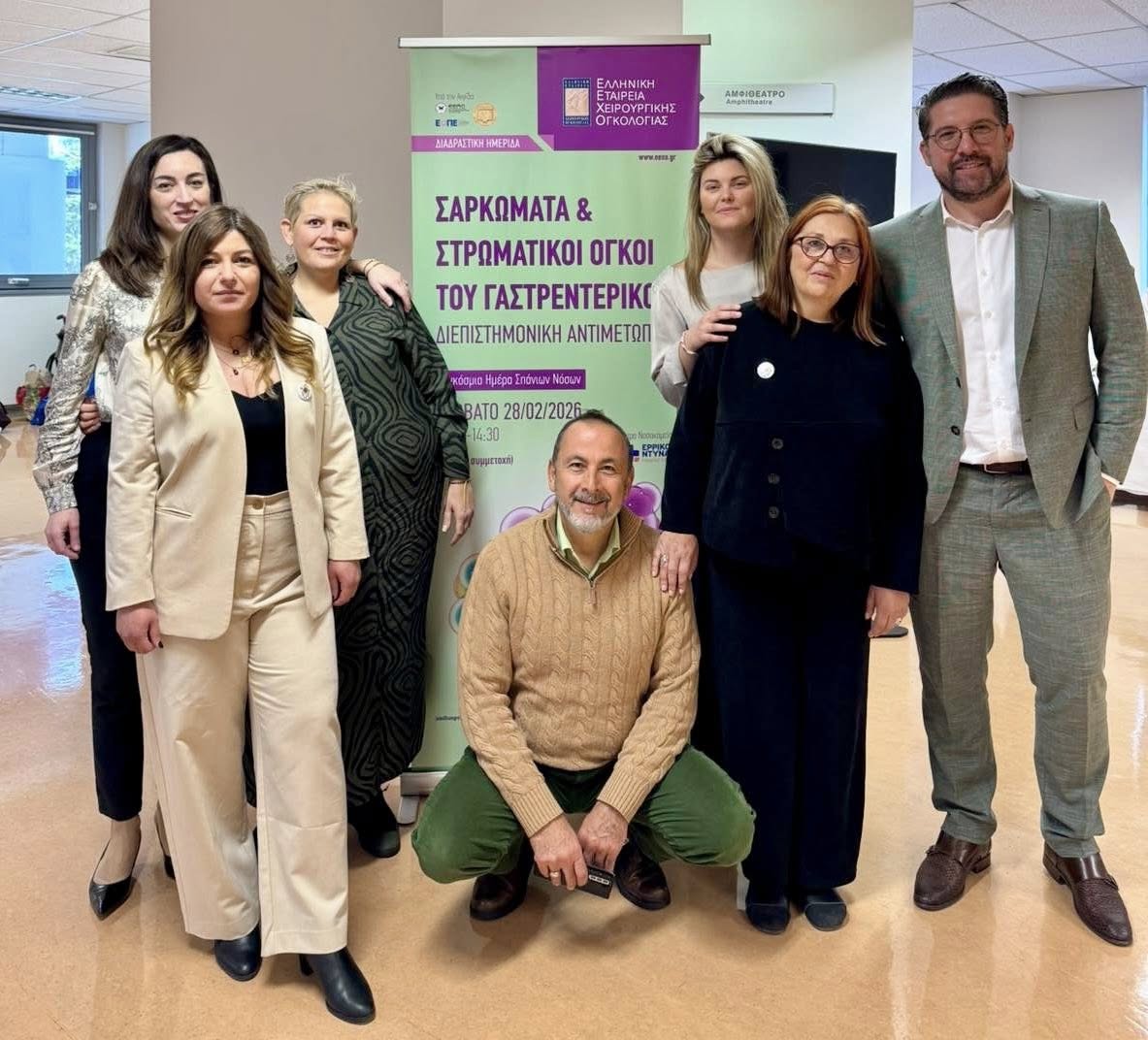 Η Ελληνική Εταιρεία Χειρουργικής Ογκολογίας, το Σάββατο 28 Φεβρουαρίου 2026, Παγκόσμια Ημέρα Σπανίων Νοσημάτων, πραγματοποίησε με ιδιαίτερη επιτυχία, στο αμφιθέατρο του Νοσοκομείου Ερρίκος Ντυνάν Hospital Center, τη διαδραστική Ημερίδα “Σαρκώματα και Στρωματικοί Όγκοι του Γαστρεντερικού: Διεπιστημονική αντιμετώπιση”.