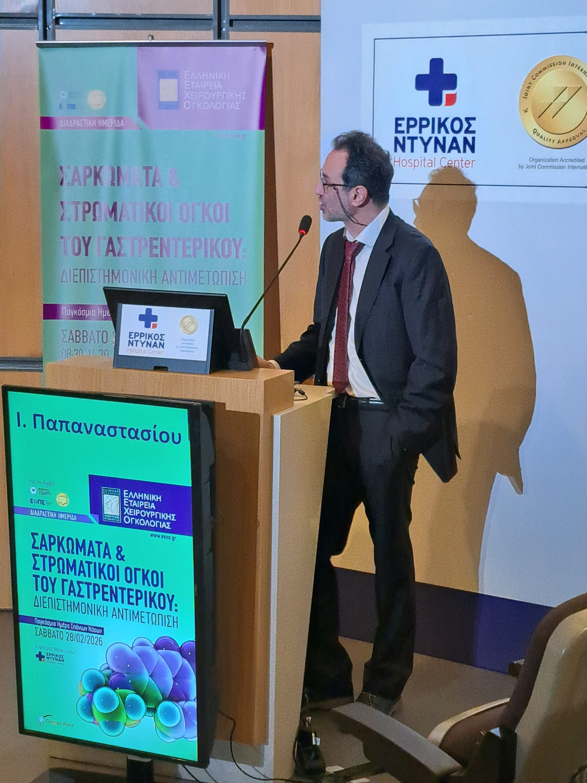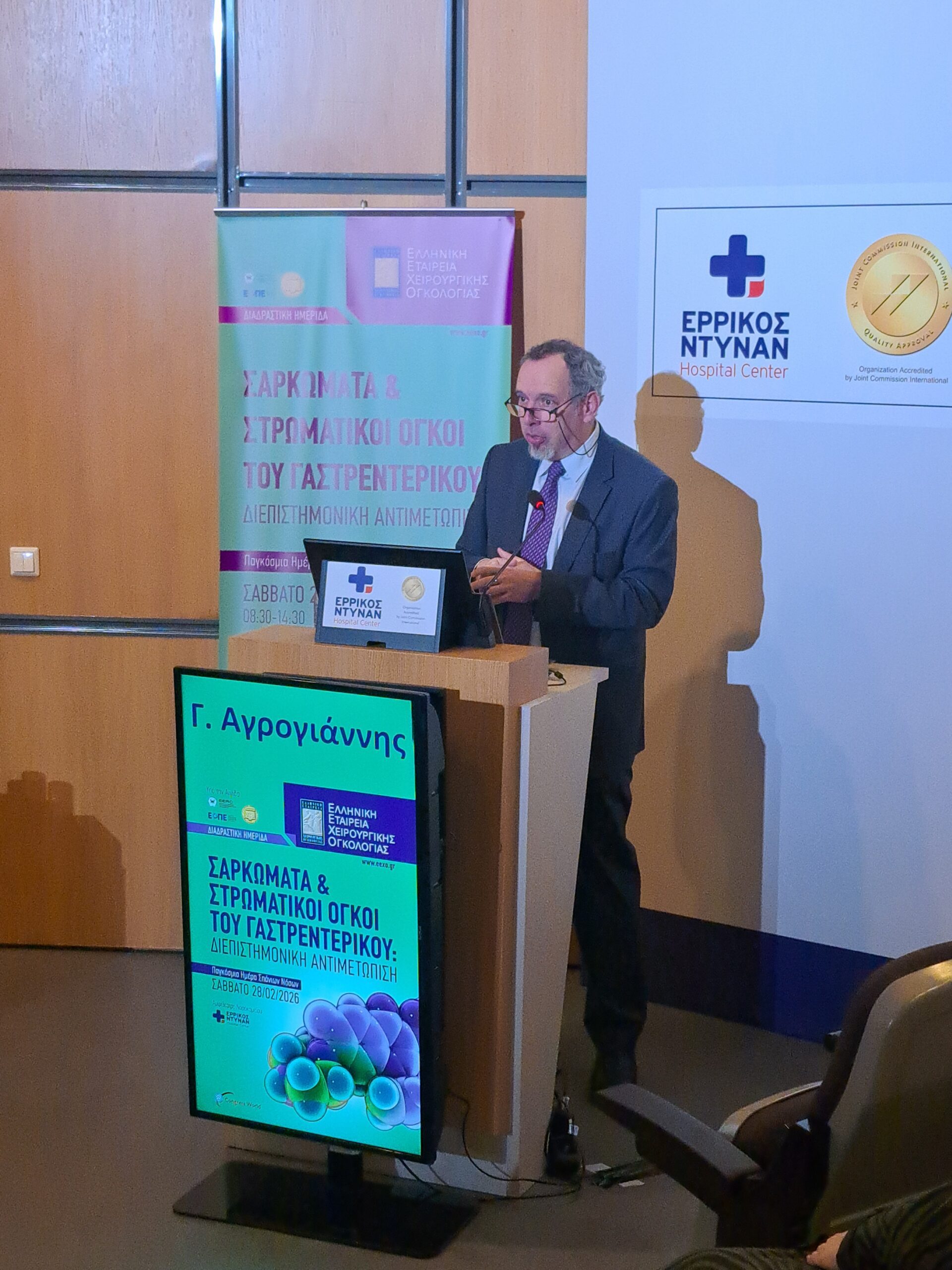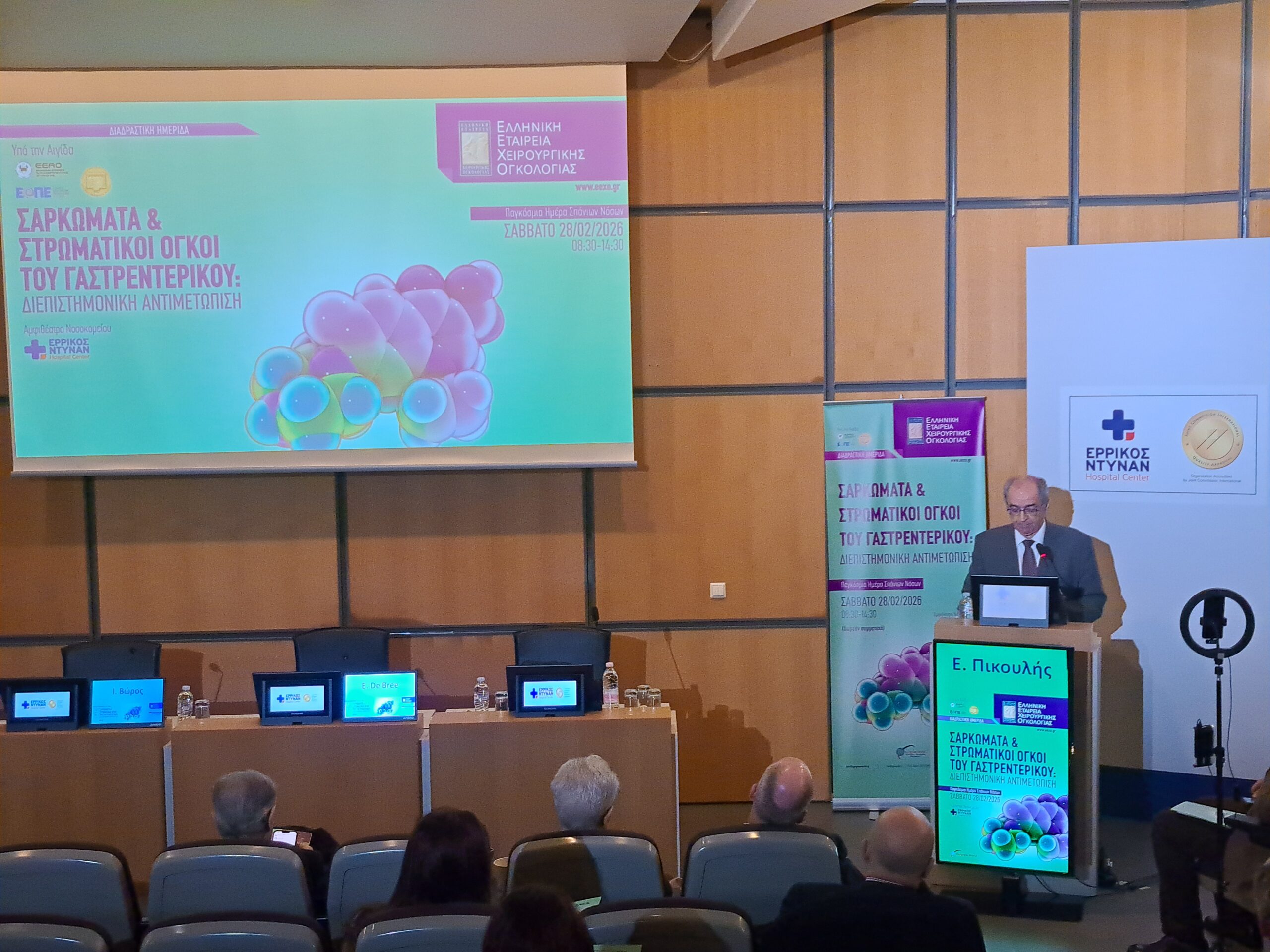 Η Ελληνική Εταιρεία Χειρουργικής Ογκολογίας, το Σάββατο 28 Φεβρουαρίου 2026, Παγκόσμια Ημέρα Σπανίων Νοσημάτων, πραγματοποίησε με ιδιαίτερη επιτυχία, στο αμφιθέατρο του Νοσοκομείου Ερρίκος Ντυνάν Hospital Center, τη διαδραστική Ημερίδα “Σαρκώματα και Στρωματικοί Όγκοι του Γαστρεντερικού: Διεπιστημονική αντιμετώπιση”.
