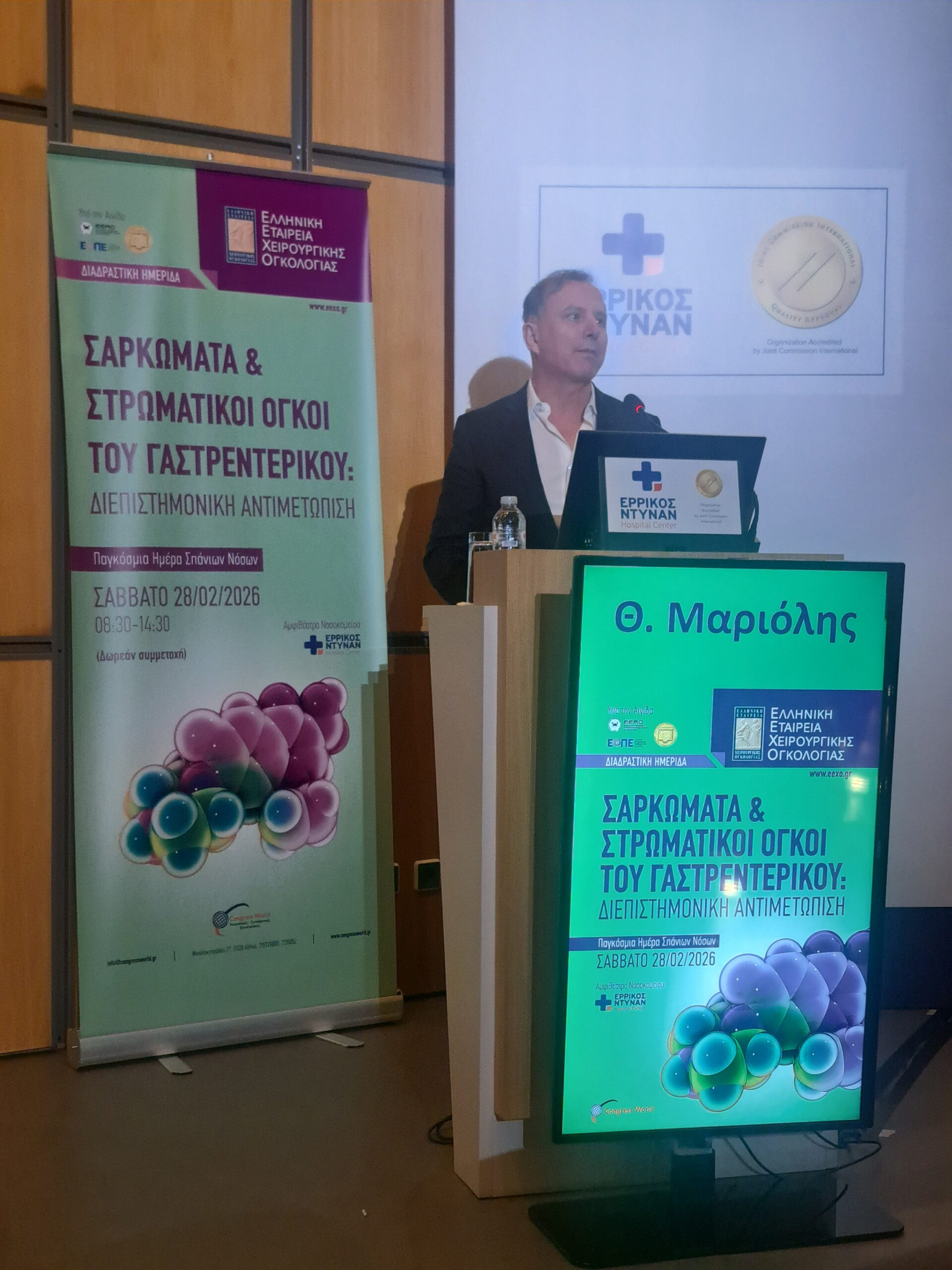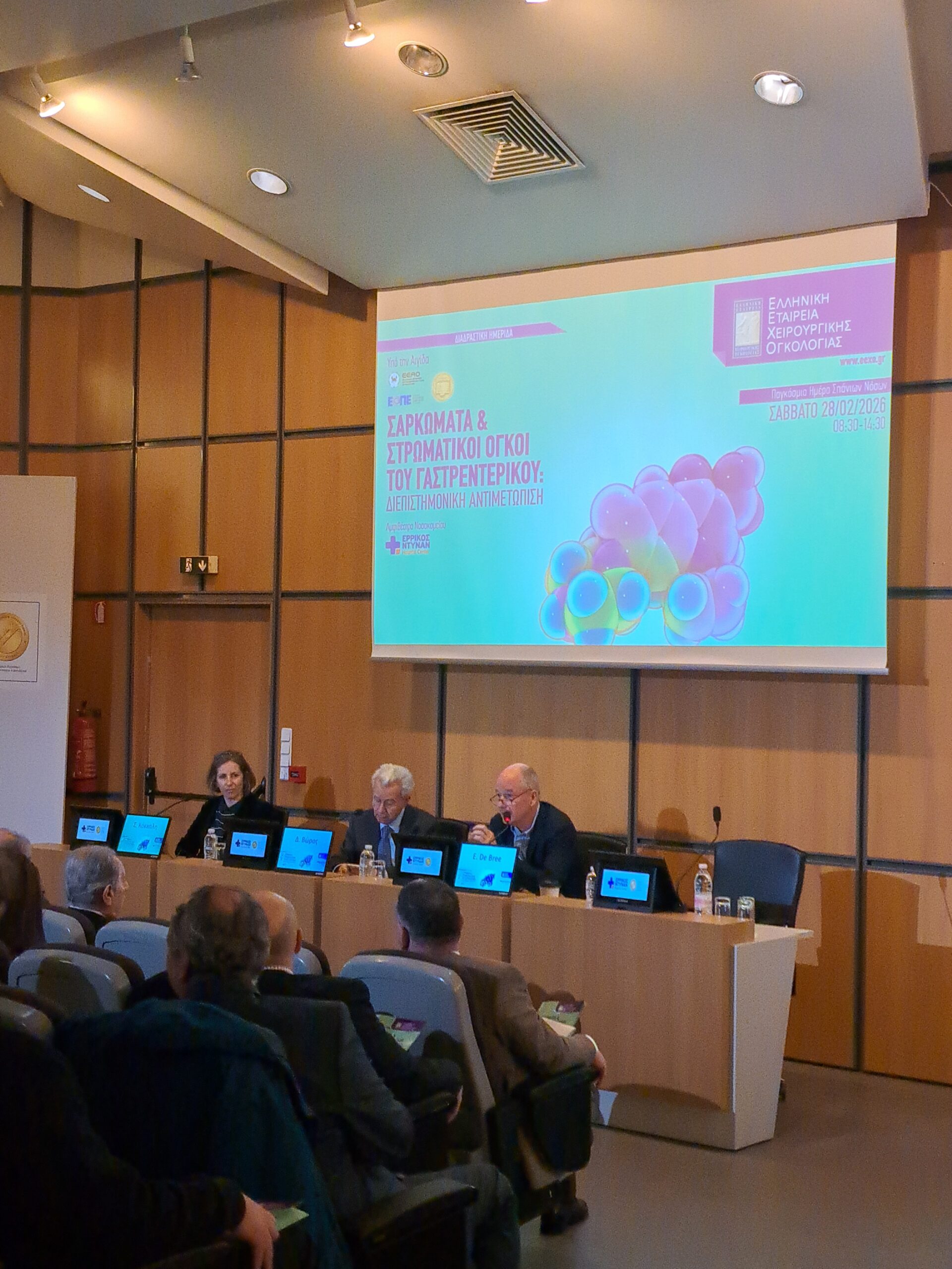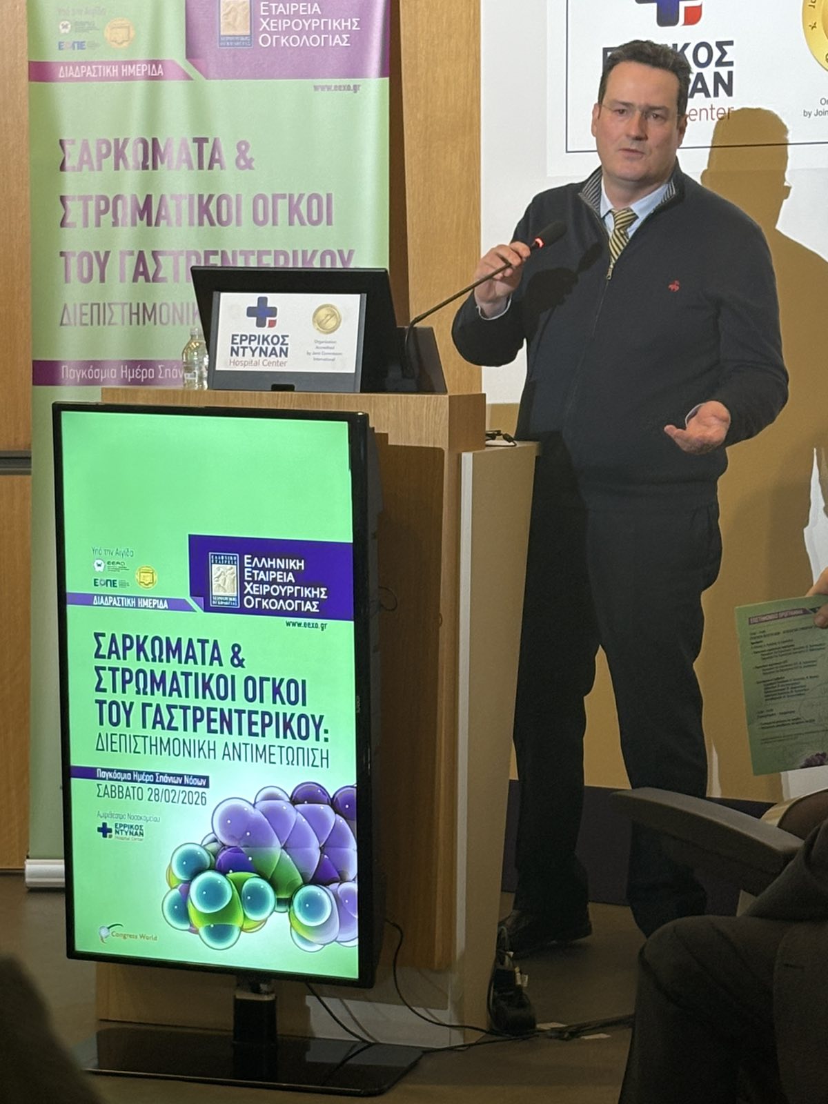Η Ελληνική Εταιρεία Χειρουργικής Ογκολογίας, το Σάββατο 28 Φεβρουαρίου 2026, Παγκόσμια Ημέρα Σπανίων Νοσημάτων, πραγματοποίησε με ιδιαίτερη επιτυχία, στο αμφιθέατρο του Νοσοκομείου Ερρίκος Ντυνάν Hospital Center, τη διαδραστική Ημερίδα “Σαρκώματα και Στρωματικοί Όγκοι του Γαστρεντερικού: Διεπιστημονική αντιμετώπιση”.