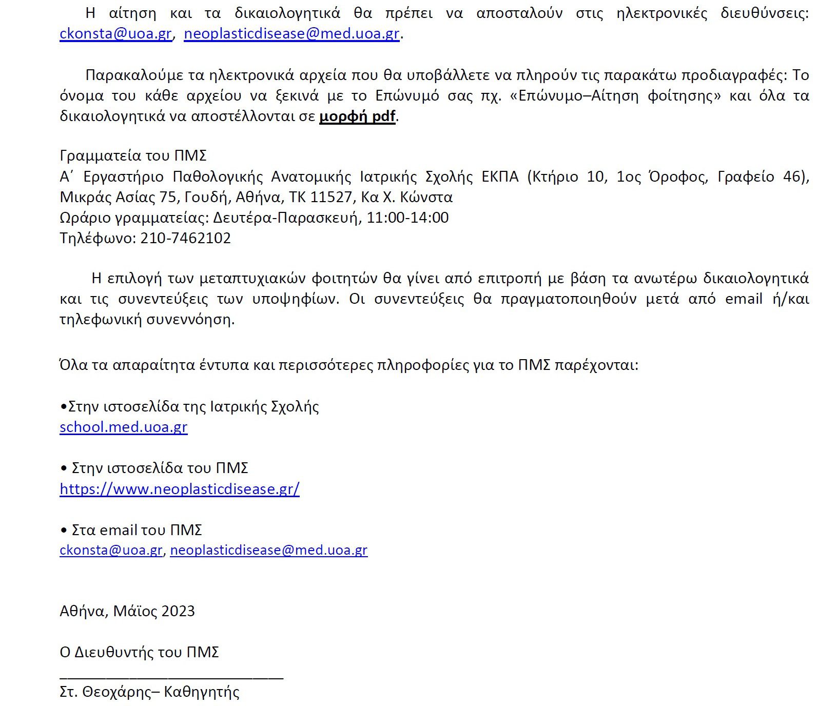 Αμ. Επίκ. Καθηγητής Χειρουργικής ΕΚΠΑ