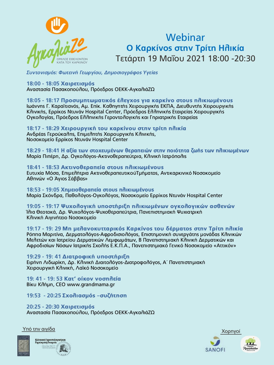Webinar ΑγκαλιάΖΩ υπό την αιγίδα της ΕΕΧΟ “Ο καρκίνος στην τρίτη ηλικία” 19.5.2021 18:00